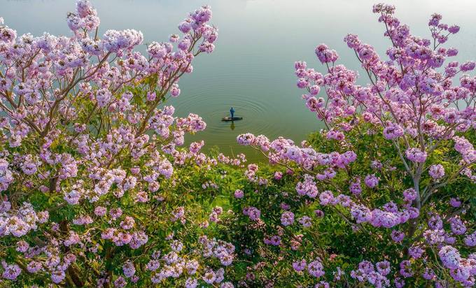Sau mùa hoa mai anh đào và phượng vàng, thành phố Bảo Lộc đang được tô điểm bởi sắc hoa hồng phấn. Nơi trồng loài cây này nhiều nhất nằm ở khu vực bờ đông của hồ Nam Phương.
