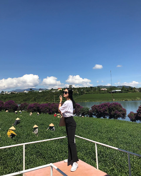 Không thua kém đồi chè Cầu Đất nổi tiếng, “ốc đảo chè” có rất nhiều góc sống ảo đẹp, lung linh. Ngoài ra, nơi đây còn trang bị thêm những chiếc ghế trắng, cầu thang, xích đu… cho bạn tha hồ check-in. Ảnh: Bhau97, liensmile66069.