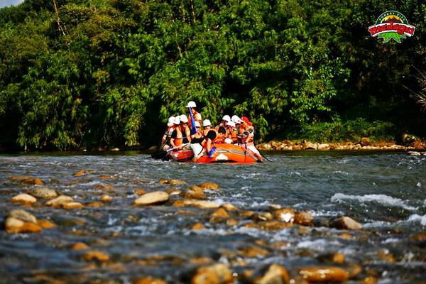 Chèo thuyền phao vượt thác, một hoạt động giải trí thú vị mà bạn nhất định không nên bỏ qua khi đến với Khu du lịch Rừng Madagui. Chỉ gần 2km thác ghềnh nhưng sẽ cần rất nhiều cố gắng và sự đồng tâm của cả một tập thể.