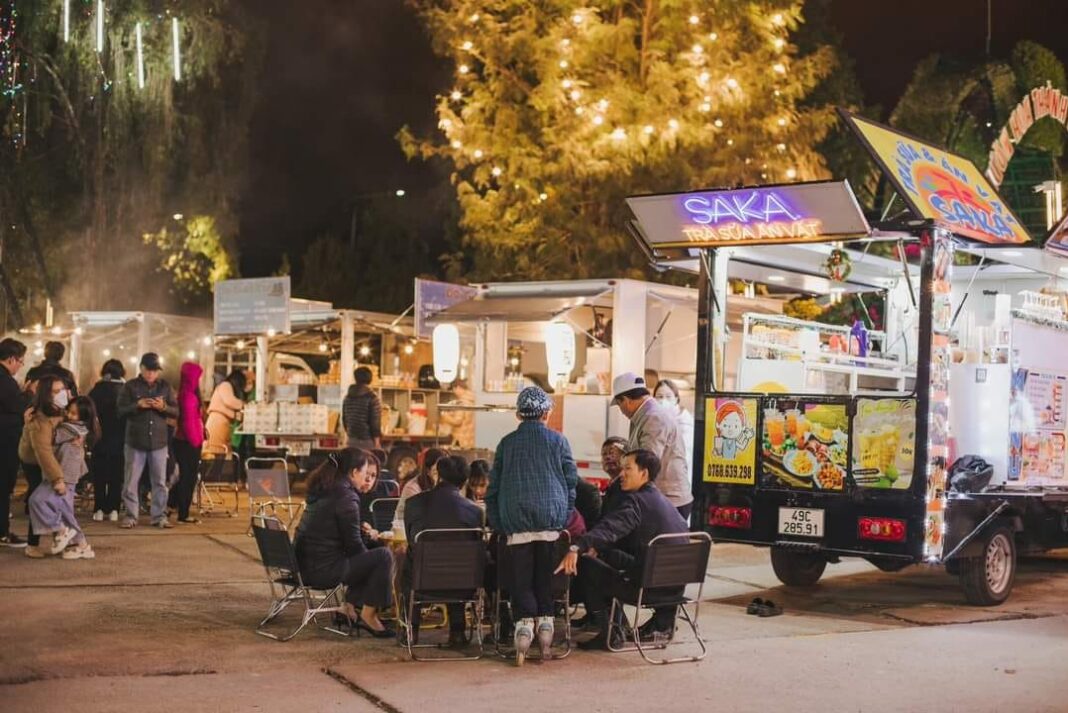 Khu ẩm thực nằm ngay trước cổng vườn hoa Đà Lạt