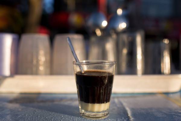 Cà phê được rót lên trên, với mùi thơm hấp dẫn hiếm nơi nào có được.