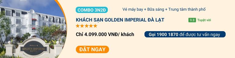 Golden Imperial nằm ngay trung tâm thành phố. Bạn chỉ mất vài phút để di chuyển đến chợ Đà Lạt và các điểm tham quan khác. Với lối kiến trúc hiện đại, đây là khách sạn – resort Đà Lạt mang đến không gian lưu trú tiện nghi.