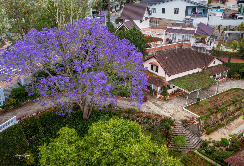 Nằm ngay trung tâm sầm uất, Nguyễn Văn Cừ là một trong những tuyến đường hoa nở rộ và đẹp nhất hiện nay. Những hàng phượng tím vươn cao, đan xen vào nhau tạo thành một vòm trời tím biếc rực rỡ. Vừa thong dong tản bộ ngắm hoa rơi lấm tấm trên vỉa hè, bạn vừa có thể ghé vào một quán cà phê nhỏ ven đường để nhâm nhi ly trà ấm và tận hưởng nhịp sống chậm rãi của Đà Lạt.