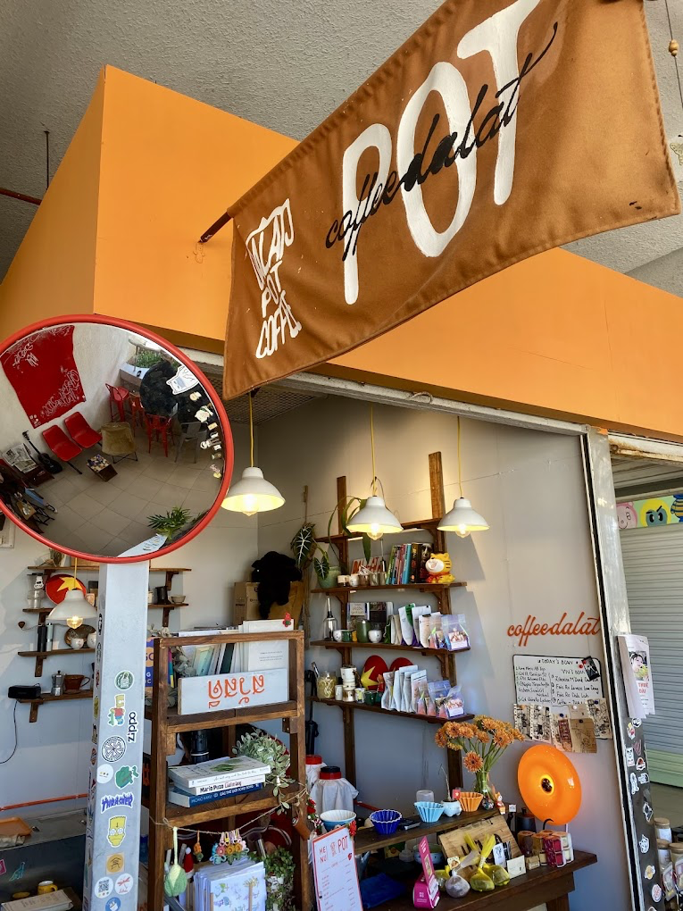 Nếu bạn muốn tìm kiếm một chút hoài niệm giữa nhịp sống hối hả, Dalat Pot Cafe chính là trạm dừng chân lý tưởng. Gian hàng nhỏ bé này nổi bật với thiết kế mộc mạc, sử dụng chất liệu gỗ và những món đồ decor nhuốm màu thời gian.